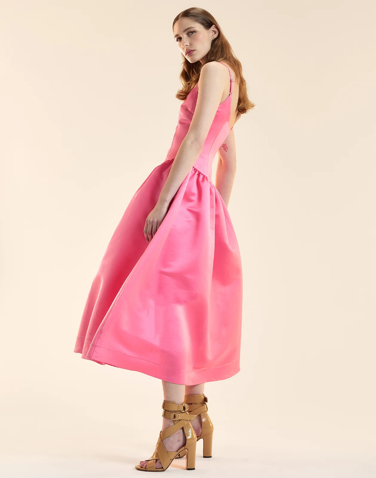 Satin Drop Waist Midi Dress