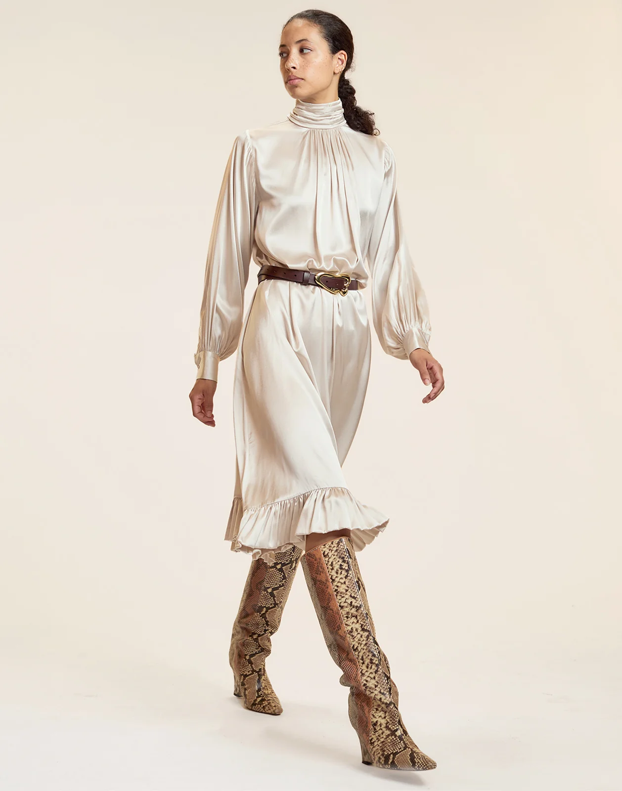 High-neck silk charmeuse dress, the perfect dress for the all year round.